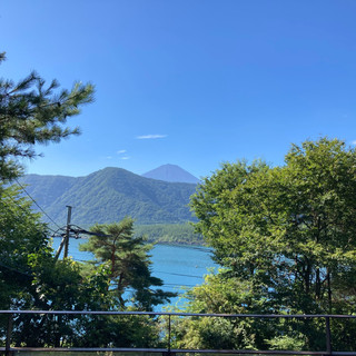 A棟から西湖週末の家〈Weekend House〉A棟 晴れた日にはリビングから富士山を見る事ができます。寒い冬は特によく見れます。 床暖房が効いたリビングで、薪ストーブで薪を焚きお茶を飲みながらのんびり過ごす事ができます。寒い冬でも快適です。