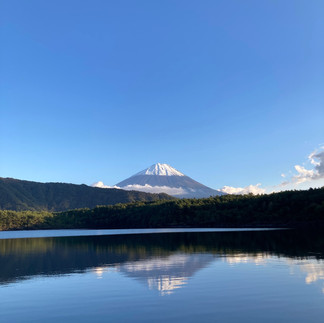 A棟から西湖週末の家〈Weekend House〉A棟 晴れた日にはリビングから富士山を見る事ができます。寒い冬は特によく見れます。 床暖房が効いたリビングで、薪ストーブで薪を焚きお茶を飲みながらのんびり過ごす事ができます。寒い冬でも快適です。