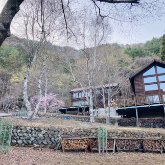 A棟から西湖週末の家〈Weekend House〉A棟 晴れた日にはリビングから富士山を見る事ができます。寒い冬は特によく見れます。 床暖房が効いたリビングで、薪ストーブで薪を焚きお茶を飲みながらのんびり過ごす事ができます。寒い冬でも快適です。